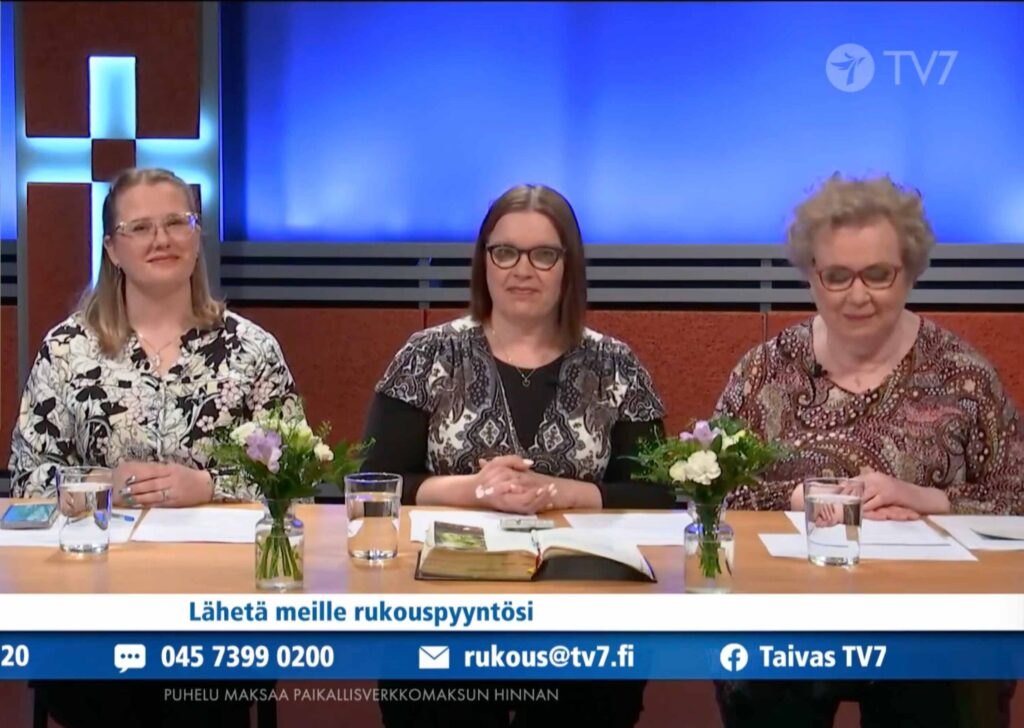 Viime syksynä sain olla mukana TV7- rukousohjelmassa rukoilemassa ihmisten puolesta. En ikinä olisi voinut kuvitella, että löydän itseni tv-ohjelmasta. Minua jännitti todella paljon ja sanoinkin Jeesukselle: auta minua, yksin en tähän pysty, tarvitsen sinua.