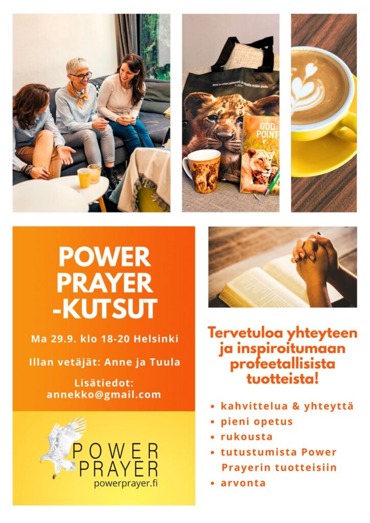 Nautitko leppoisasta kahvihetkestä arjen keskellä Pyhän Hengen läsnäolossa ja mukavassa seurassa samanhenkisten kanssa? Kiinnostaako sinua samalla tutustua Power Prayerin profeetallisiin tuotteisiin sohvalta käsin?