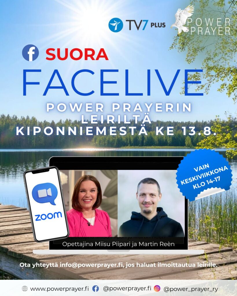Power Prayerin Facebook -sivulta pääset mukaan seuraamaan suoraa lähetystä leirin ensimmäisestä päivästä. Liven aikana profeetallisuudesta ja Jumalan rakkaudesta opettavat Miisu Piipari ja Martin Reén.