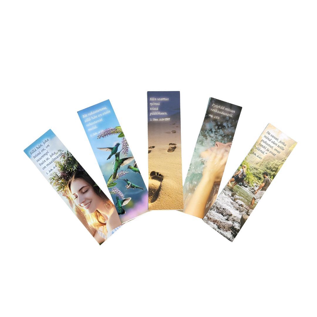 Kirjanmerkki on oivallinen Raamatun tai muun kirjan välissä. Erinomainen lahjaidea ja hyvä keskustelun avaaja evankelioinnissa!