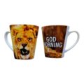 Kartionmuotoinen muki näyttävällä leijonapainatuksella muistuttaa Jumalan armosta joka aamu, olosuhteista riippumatta.