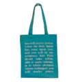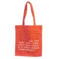 Kasseja on neljää eri väriä. Teksti on vain toisella puolella kassia. Huom: pinkissä (raspberry pink) ja tummansinisessä (french navy) kassissa teksti kahdella värillä. Kassi soveltuu hyvin olalla kannettavaksi.