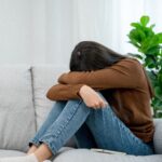 Kaksi naista sohvalla, toinen kuuntelee myötätuntoisesti toista